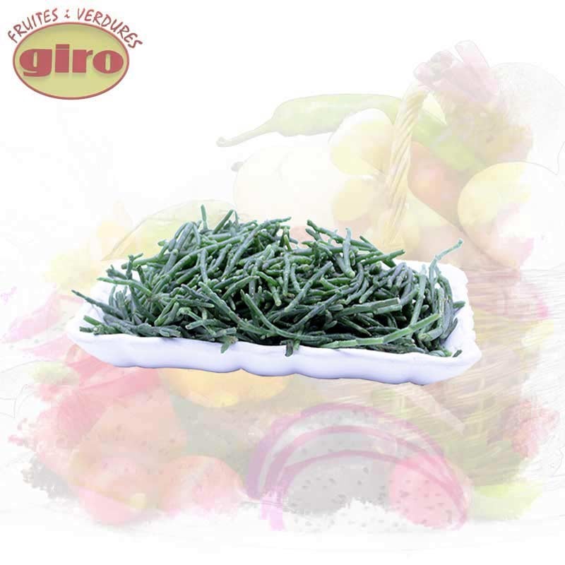 Salicornia fresca seleccionada, de textura crujiente e intenso sabor a sal, Puede consumirse cruda, al vapor, frita o salteada y en menestra,