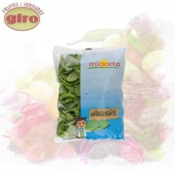 Hosjas de espinacas frescas, de primera calidad, cosechadas antes de que estén maduras, embolsadas, Con hojas delgadas y tiernas, perfectas para refinar platos de pasta o guisos,