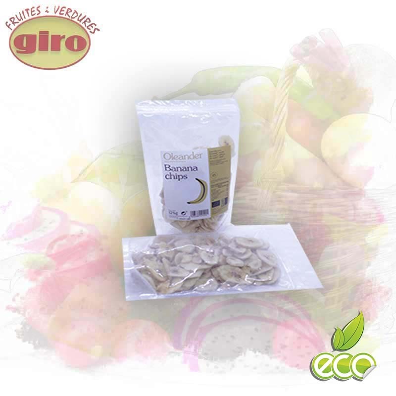 Chips de plátano de agricultura ecológica, crujientes y sabrosos, envasados, con aceite de coco, azúcar de caña y miel, Excelente opción como snack a media tarde o media mañana, o incorporados a otras preparaciones,