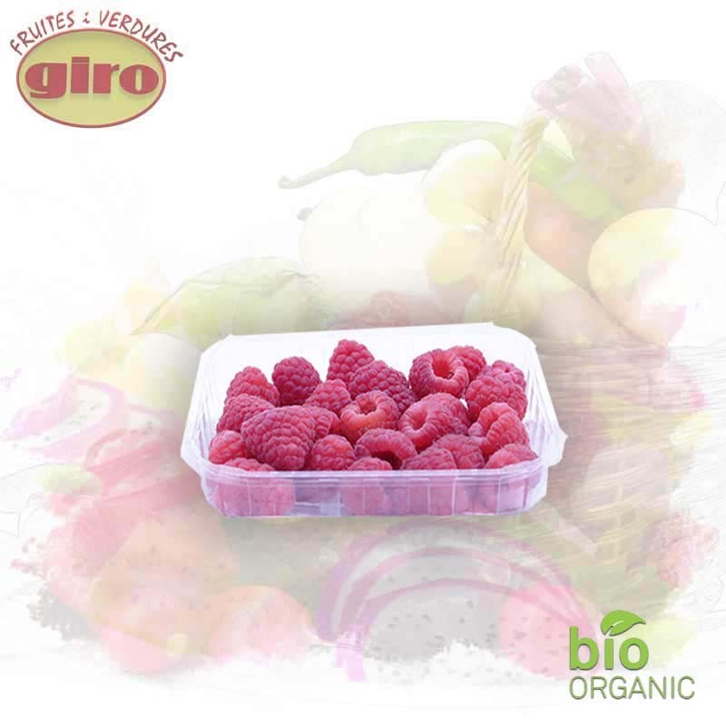 Frambuesas frescas de temporada de agricultura biológica, Muy aromáticas y de sabor agridulce, pueden tomarse frescas o en platos dulces o salados: con crema, con chocolate, en mermelada, para acompañar platos de carne, …