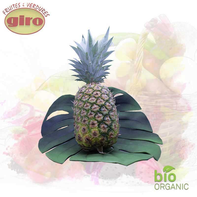 Piña fresca seleccionada de cultivo biológico, de agradable sabor agridulce, Se puede consumir cruda al natural sola o en ensaladas, o asada, combinada con postres horneados o en zumos y batidos,
