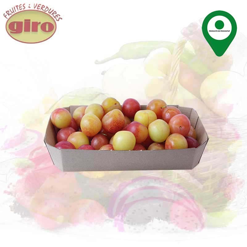 Ciruelas de proximidad variedad mirabolá (mirabolano), redondas y de pequeño tamaño, color amarillo y sabor ácido con puntos de gran dulzor, recubiertas a veces de una fina piel comestible de aspecto ceroso,