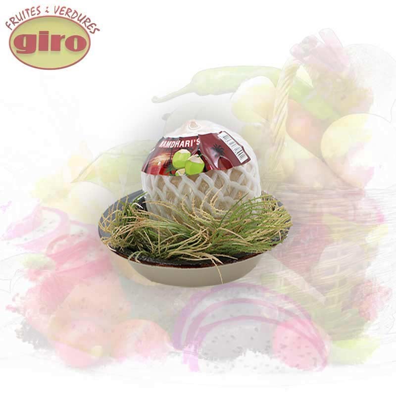 Coco joven fresco entero, pelado, perfectamente envasado y listo para consumir,
