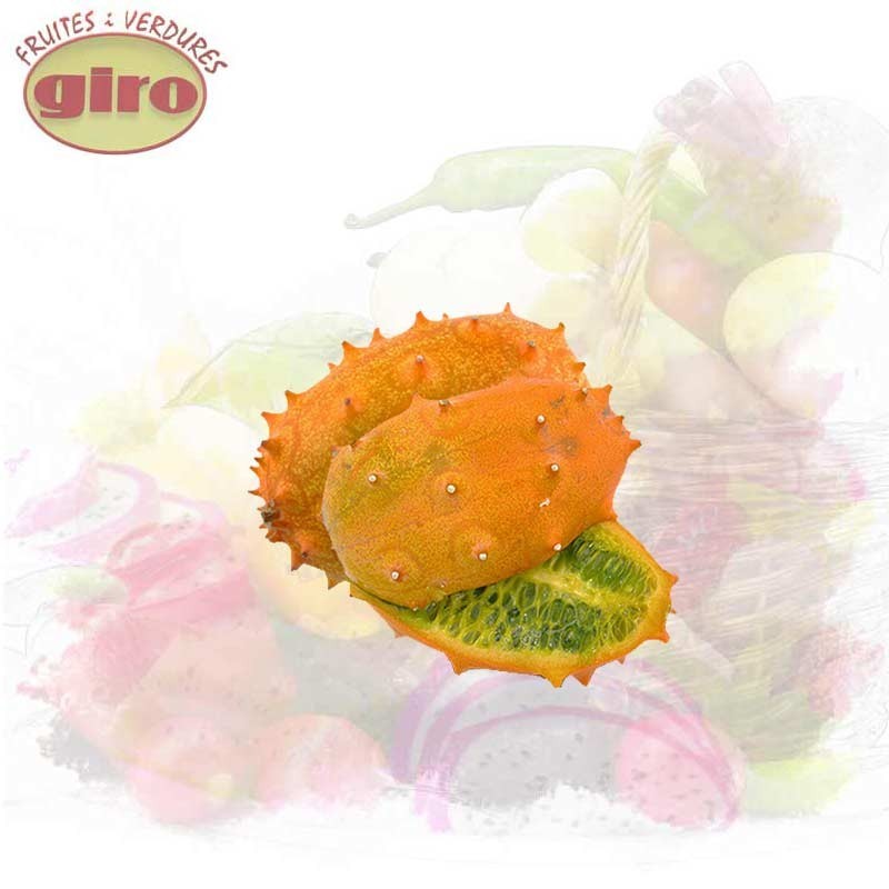 Kiwano (melón africano) fresco, de primera calidad, de sabor intenso, levemente agridulce y acuoso, Para consumir fresco (se puede añadir sal, azúcar, vinagre o limón) solo o en macedonias, ensaldas, con yogur, o cocinado (asado, hervido) con verduras,