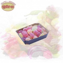 Chuches (golosinas, gominolas, …) presentadas en bandejas de,, para consumir directamente como snack o incorporar a otros platos, en especial los postres,