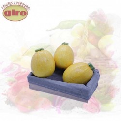 Variedad de calabacín de origen país, de fruto redondo y color amarillo, Se puede presentar relleno, cortado en trozos o en tiras, como guarnición para carnes, pescado o quesos, o como plato directo, Lo mejor es consumirlo con piel,