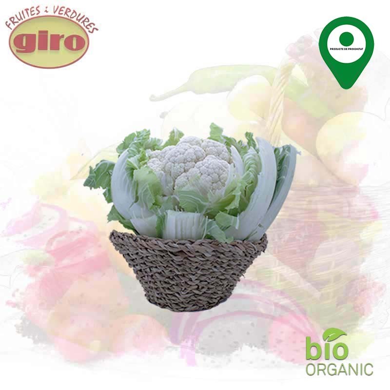 Coliflor de agricultura biológica, Puede prepararse al vapor, estofada, hervida, gratinada, ,,, tanto sola como ingrediente principal como en guarnición para carnes y pescados, en menestras, …