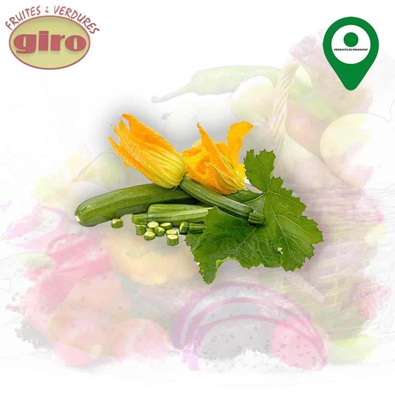 Calabacín de origen país, con su característica flor de color amarillo intenso, que también puede consumirse, Se puede presentar relleno, cortado en trozos o en tiras, como guarnición para carnes, pescado o quesos, o como plato directo, Lo mejor es consumirlo con piel,