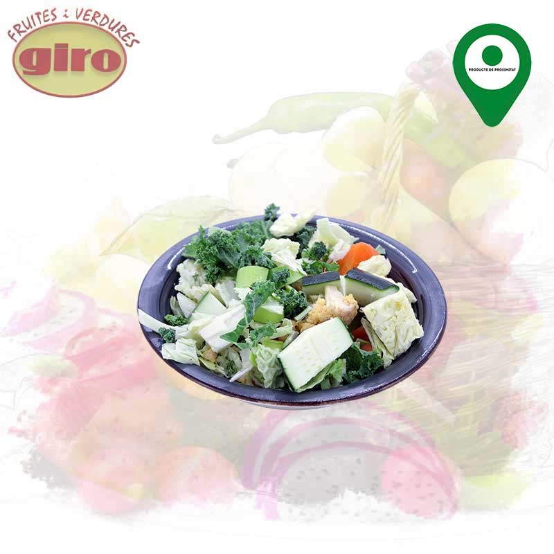 Preparado fresco de verduras y hortalizas de temporada cortadas en juliana (acelga, puerro, zanahoria, nabo, col, apio, …) listo para cocinar y enriquecer cualquier plato,